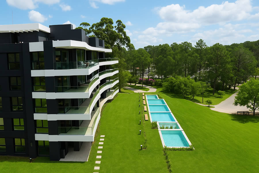 Sofisticados apartamentos rodeados de naturaleza. Apartamentos de entre 40 y 200 m² construidos con los mejores estándares de calidad y diseño, ubicados en medio de 140 hectáreas de bosque virgen, piscinas, jardines y lagos.