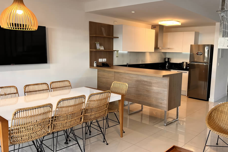 Las unidades, para 4 y 6 personas, están totalmente equipadas y cuentan con amplias terrazas, cocina completa integrada, desayunador, baños completos, hidromasaje, cochera con pérgola, parrilleros, led TV y Wi-Fi.